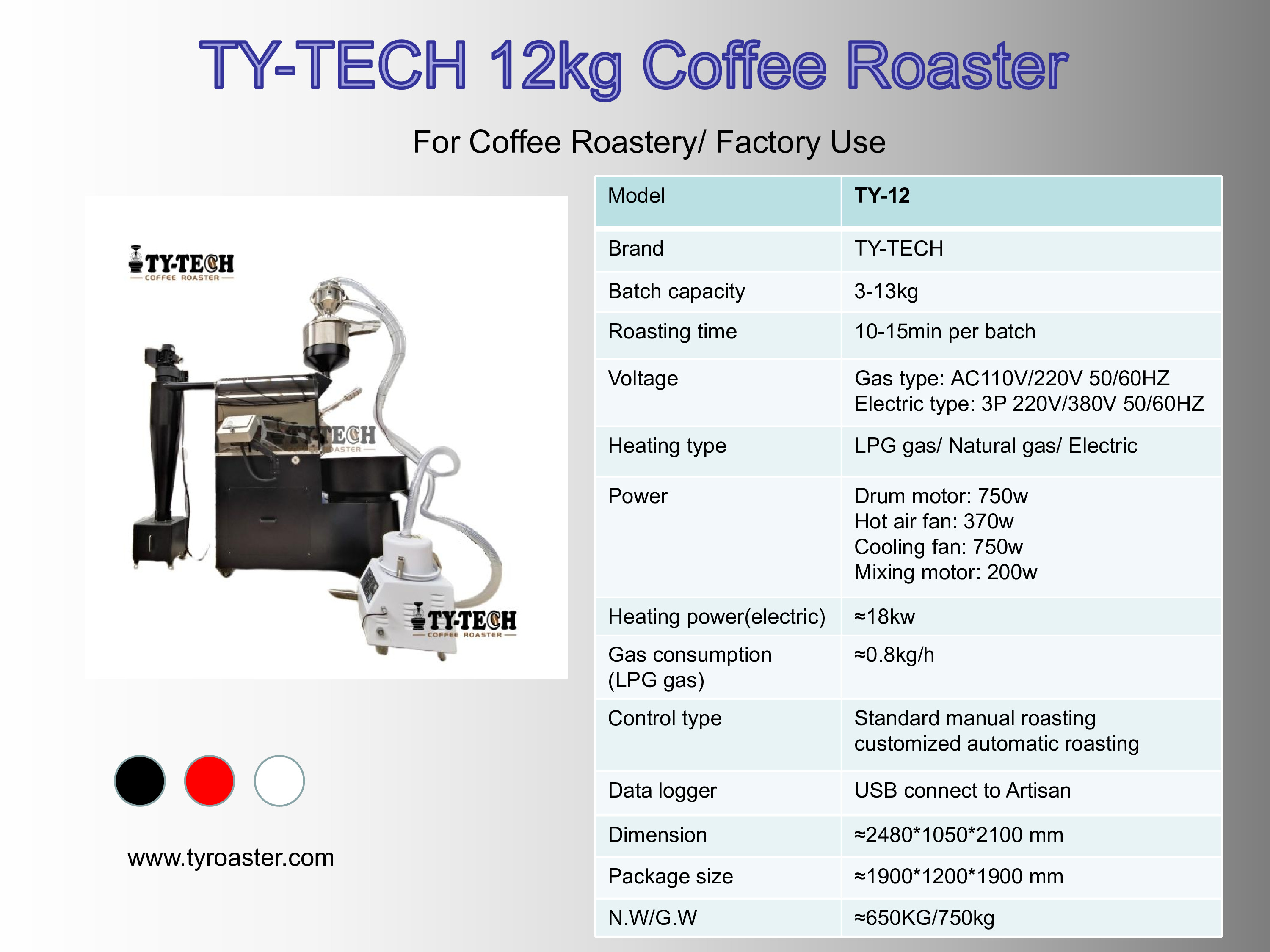 Our handcrafted, PLC Control easy-to-use 12kg coffee roaster machine, with a production capacity from 3kg up to 13 kg,
